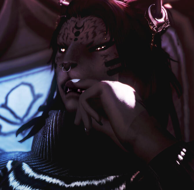 An Ala Mhigan firebrand with lightning where her blood should be - the Clover’s chief of security. Happiest raising glasses or fists, she offers an ear (or an arm) wherever needed. Patrons had best keep their heads on straight, lest they find Thyri putting theirs through the bar. Deals with mercenaries and other martially-inclined work that finds its way to the Clover.